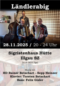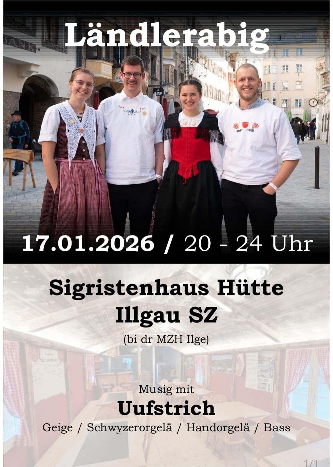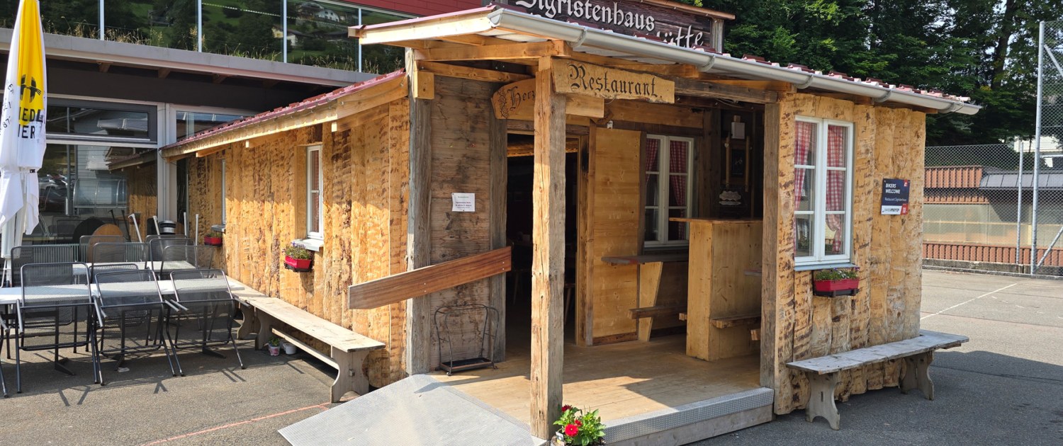| Herzlich Willkommen in der Sigristenhaus-Hütte, dem Übergangsrestaurant. Unsere Mitttagsmenüs servieren wir Ihnen gerne ab 12:00 Uhr Da wir Sie momentan im Provisorium «Sigristenhaus-Hüttä» bewirten, haben wir die Anzahl der Menüs reduziert. Das jeweilige Mittagsmenü finden Sie Mittagsmenüs: 18. – 23.11.2025 Mitttwoch, 19.11.2025: Seniorennachmittag mit anschliessendem Nachtessen Falls Sie Fragen haben, rufen Sie uns bitte an (041 830 12 02)